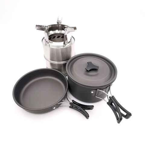 AJOTEQPT नई आउटडोर लंबी पैदल यात्रा Cookware पोर्टेबल तह सेट बर्तन लकड़ी स्टोव संयोजन डेरा डाले हुए स्टोव किट